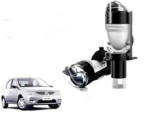 Auto Pearl - لمبات أمامية للسيارة بعدسة بروجكتور ليد H4 من أوتو بيرل، 12 فولت، 8000 لومن، شريحة H4 CSP، شعاع عالي/منخفض، 45-55 وات كانباس تيربو، ضوء أبيض 6000 كلفن، متوافقة مع لوجان 2004-2011 (عبوة من 2 قطعة)