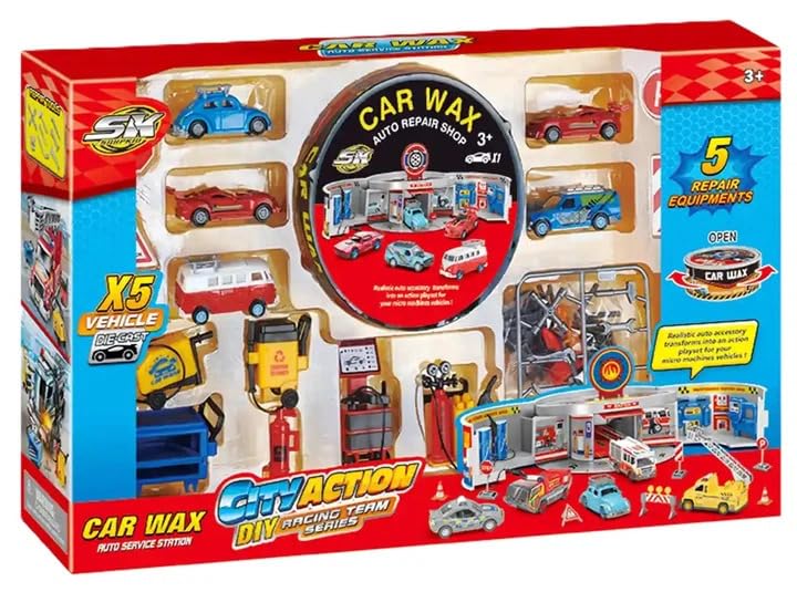 - ورشة إصلاح سيارات كاملة: تتميز مجموعة ألعاب محل إصلاح السيارات بمحطة خدمة مفصلة مع فتحة إصلاح واقعية، مما يسمح للأطفال بالمشاركة في سيناريوهات لعب السيارات الخيالية.
