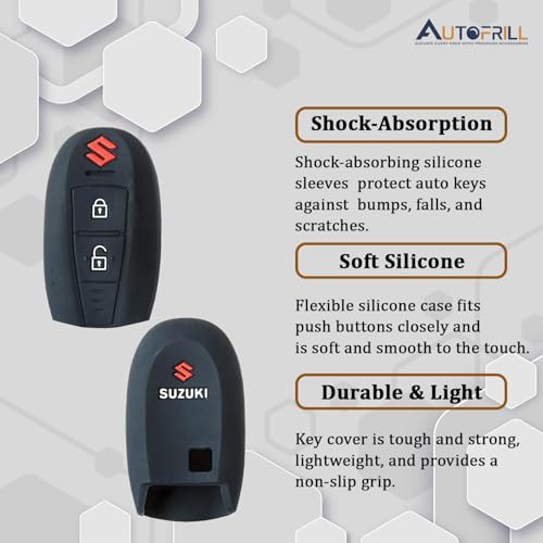 AUTOFRILL - غطاء مفتاح سيارة من السيليكون من اوتوفريل،| غطاء مفتاح ذكي بزرين (أسود)