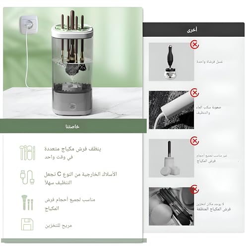 - يعطي منظف فرش المكياج التلقائي الأولوية لسهولة الاستخدام، ولا يتطلب سوى إضافة الماء ومحلول التنظيف قبل إدخال رأس الفرشاة وبدء عملية التنظيف بزر بسيط بلمسة واحدة. تصميمها البديهي يجعلها سهلة الاستخدام ولها أيضًا وظيفة تسمح للمستخدم بتخزين فرش المكياج النظيفة في مكان تكون فيه محمية من الغبار أو الحطام.