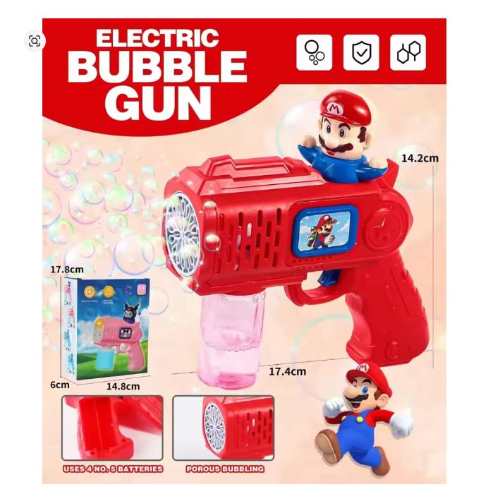 - مسدس فقاعات أوتوماتيك للأطفال، لعبة كهربائية تعمل بالبطارية بتصميم ممتع وضوء مدمج، مولد فقاعات فوري مع محلول مركز بسعة 10 مل، لعبة آمنة وسهلة الاستخدام للعب في الهواء الطلق.