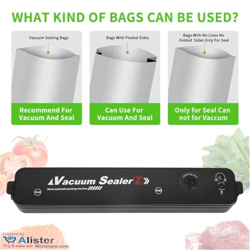 - ✪ تحتوي ماكينة الإغلاق الاوتوماتيكية على 10 أكياس محكمة الغلق مسبقًا بعد تفريغ الهواء.