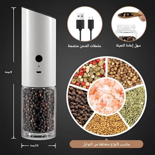 Generic - مطحنة فلفل اوتوماتيكية - مطحنة فلفل اوتوماتيكية انيقة مع حجرة طحن من الستانلس ستيل، اعدادات دقيقة، قادوس كبير قابل لاعادة الملء، قفل امان، تشغيل بنقرة واحدة للفلفل المطحون الطازج.