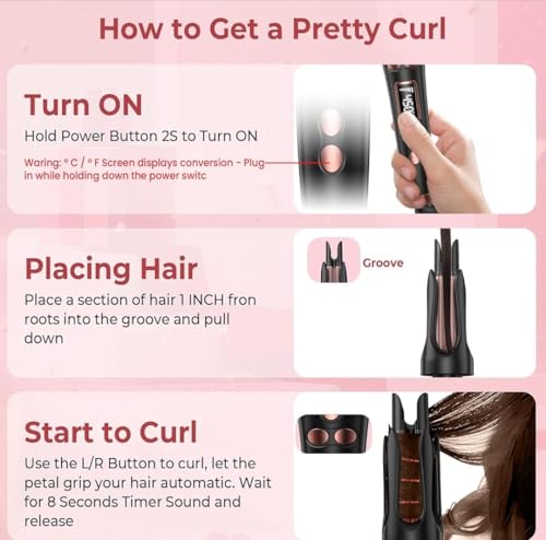 - تقنية التجعيد الأوتوماتيكي: أسطوانة دوارة كبيرة تلتف حول الشعر تلقائياً لإنشاء تجاعيد وتموجات طبيعية وجذابة بسهولة ودون مجهود