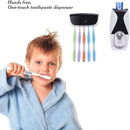 Generic - موزع معجون أسنان تلقائي يثبت على الحائط مع حامل فرش أسنان لـ5 أشخاص، حل ذكي لتنظيم الحمام، نظافة أعلى، تقليل الهدر، ومثالي للأطفال والعائلة