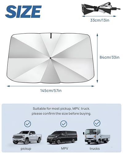 - احصل على سيارة باردة، محمية وأنيقة هذا الصيف مع المظلة المثالية، الاكسسوار الأساسي لكل مالك سيارة. تم تصميم هذا المنتج ليعكس الأشعة فوق البنفسجية الضارة ويحافظ على درجة الحرارة الداخلية لسيارتك خلال الطقس الحار.