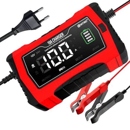 generic - شاحن بطارية سيارة ذكي واوتوماتيك بالكامل بقوة 10 أمبير، 12 فولت و24 فولت، مع حفظ لطاقة البطارية وتعويض لدرجة الحرارة (12 فولت/24 فولت - 10 أمبير)