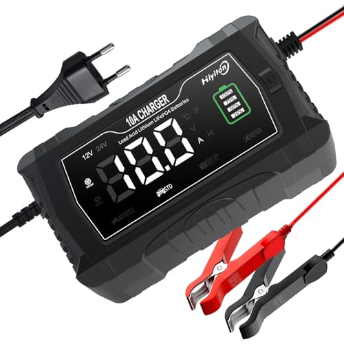 generic - شاحن بطارية سيارة ذكي وأوتوماتيك بالكامل بقوة 10 أمبير، 12 فولت و24 فولت، مع حفظ لطاقة البطارية وتعويض لدرجة الحرارة (12 فولت/24 فولت - 10 أمبير-أسود)