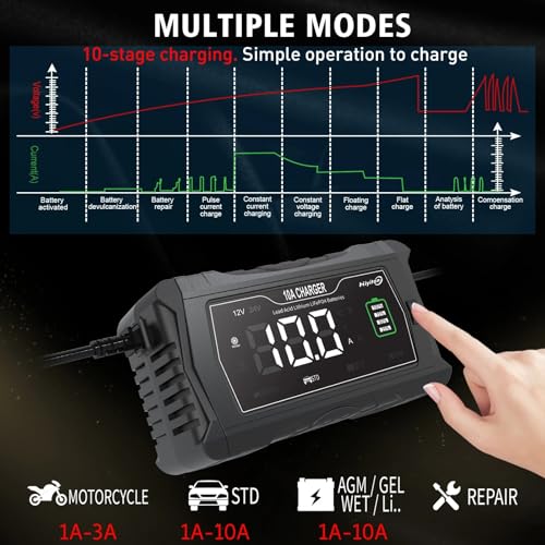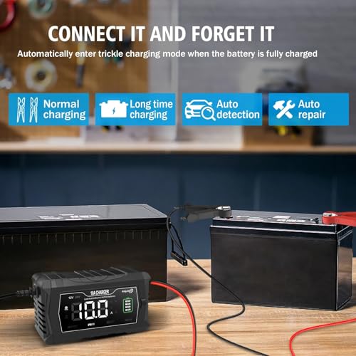 - أداء قوي: يوفر هذا الشاحن الأوتوماتيكي بالكامل 10 أمبير شحنًا دقيقًا لبطاريات الرصاص الحمضية 12 فولت و24 فولت وبطاريات ايه جي ام والجيل والليثيوم وغيرها من بطاريات السيارات/البحرية.