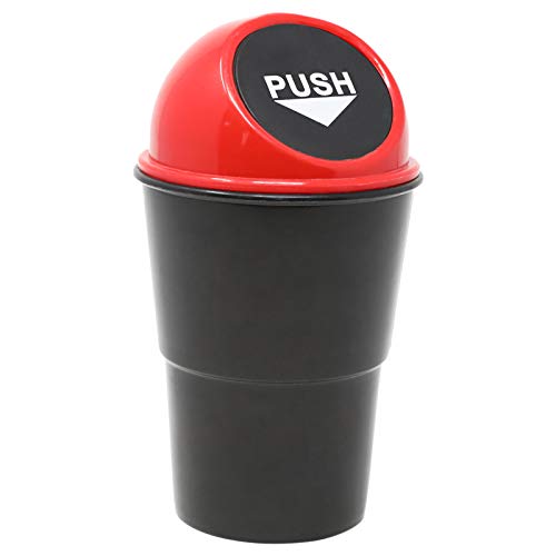 Automix - سلة مهملات للسيارات والمكتب والمنزل، مقاس حامل الأكواب، لون أسود وأحمر