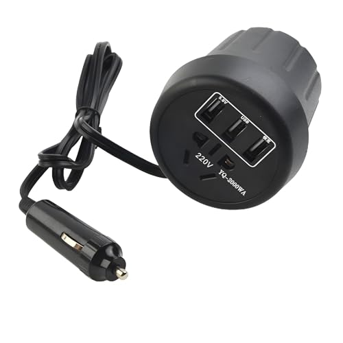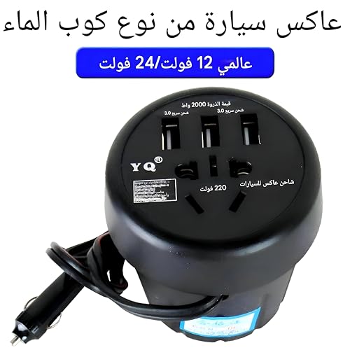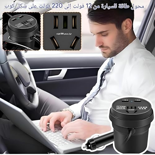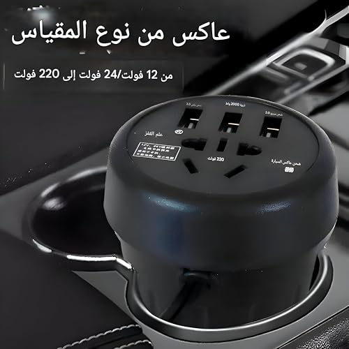 Generic - محول فولت السيارات - محول طاقة USB 12 فولت إلى 220 فولت مع حامل كوب ومروحة مدمجة لتبريد هادئ، حماية من القصر، شاشة LED، مثالي لللابتوب، الدرن والبروجكتورات المحمولة أثناء الرحلات.