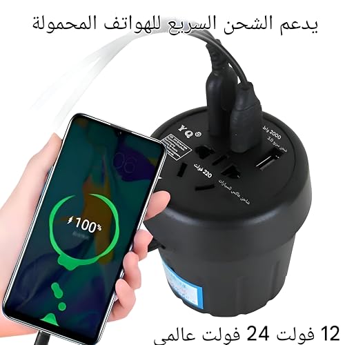 - يوفر مخرج تيار متردد 220 فولت إلى جانب عدة منافذ USB، ما يمكنك من تشغيل حاسوب محمول، شحن هاتف ذكي، تشغيل تابليت أو أي جهاز صغير آخر في وقت واحد، مع الحفاظ على تحويل الجهد بأمان، لضمان حصول أجهزتك على طاقة ثابتة دون تقلبات.