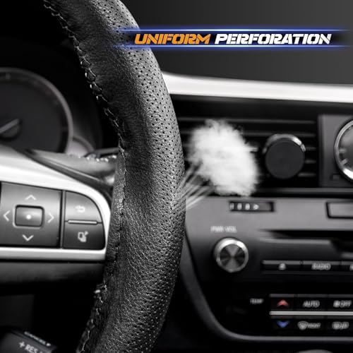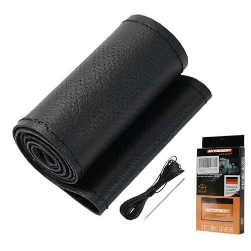 AUTOXBERT - غطاء طارة الدركسيون من اتواكسبيرت، من الجلد الطبيعي 38 سم، غطاء ناعم للخياطة اليدوية مع خيط ابر