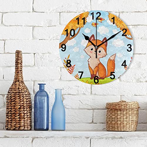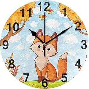 Generic - ساعة حائط دائرية بتصميم ثعلب خريفي، بنظام كوارتز تناظري هادئ بدون صوت، تعمل بالبطارية، سهلة القراءة ومناسبة للديكور في المطبخ أو غرفة النوم أو الحمام أو غرفة المعيشة أو الصف الدراسي، 31 سم