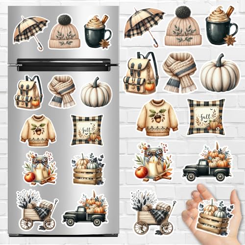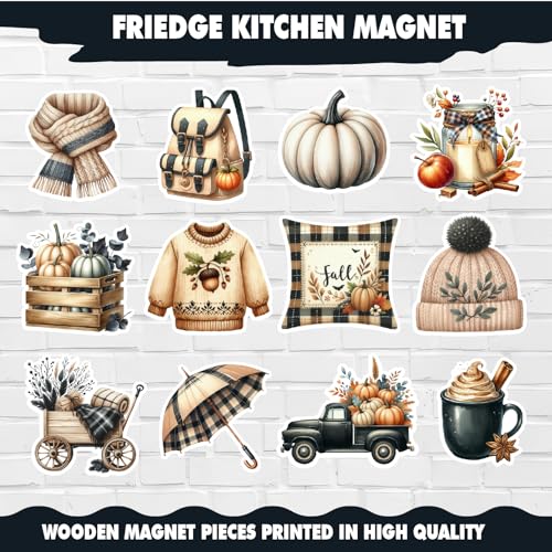 Generic - مجموعة مغناطيس ثلاجة الخريف - بيج واسود، مغناطيس موسمي مريح مع اليقطين واوراق الشجر والجوز واجواء الخريف للثلاجة وديكور المطبخ والمكتب والديكور الجمالي والمنزل