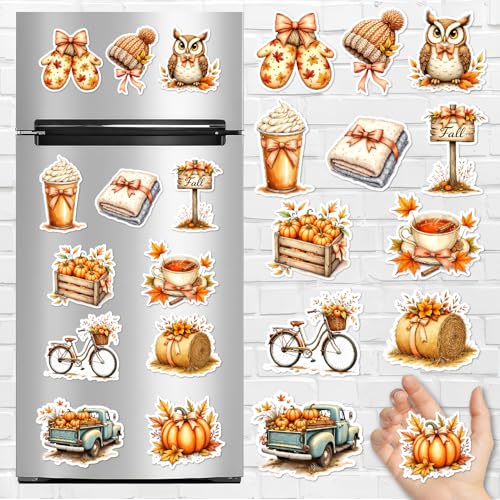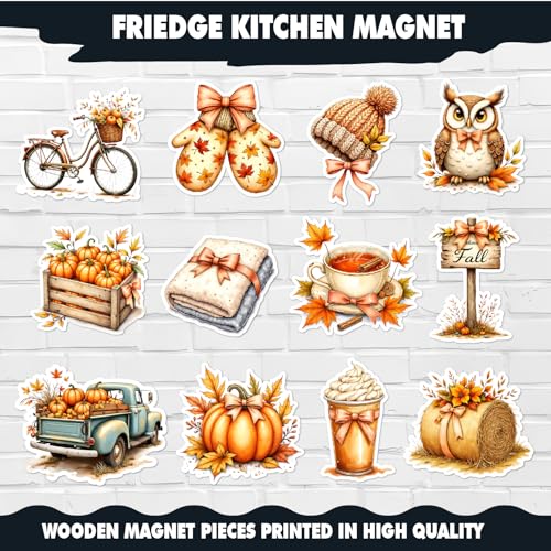 Generic - مجموعة مغناطيس ثلاجة الخريف - مغناطيس موسمي مريح باللون الاخضر مع اليقطين واوراق الشجر والجوز واجواء الخريف للثلاجة وديكور المطبخ والمكتب والحرف اليدوية والديكور الجمالي والمنزل