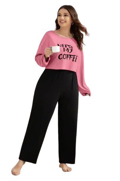 Generic - بيجامه حريمي خريفي - قطن سينجل ليكرا- بنطلون شروال - مقاس بيج سايز من 85 حتى 110 كيلو -لون كشمير- موديل رقم #: 407-236