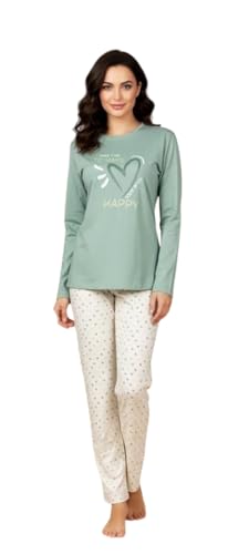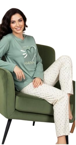 Generic - بيجامة خريفي تيشيرت بتصميم شعار و بنطلون بنقشة قلوب خامة قطن للنساء