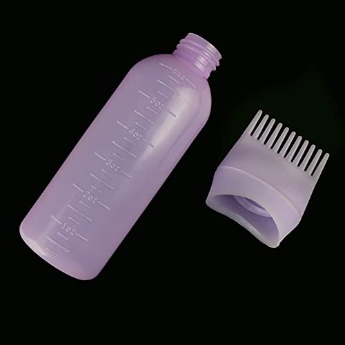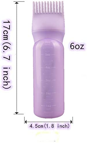 Autupy - مجموعة زجاجات توزيع صبغة الشعر مزودة بمشط ومقياس متدرج مصنوعة من البلاستيك بحجم 6 اونصة وتعمل بالعصر لصبغة ومستحضرات علاج فروة الرأس مكونة 4 قطع اوتوبي ارجواني ابيض