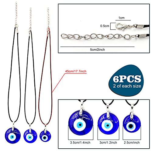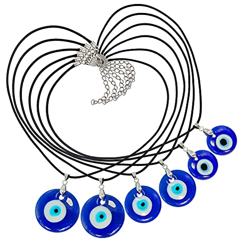 Auvoau - دلايات عين زرقاء تركية للحسد مع سلسلة حبل جلدية قابلة للتعديل للنساء والرجال زجاجية للحماية من الحسد وجلب الحظ اوفواو 6 قطع زجاج كوارتز