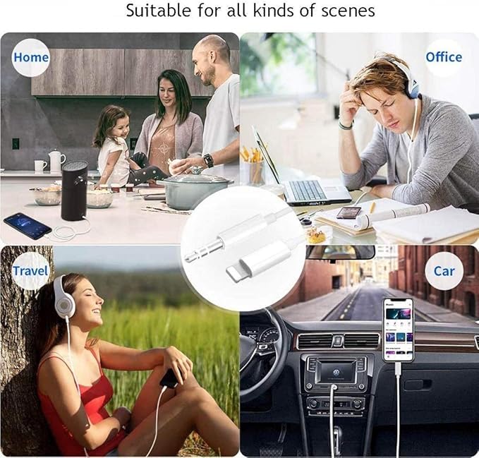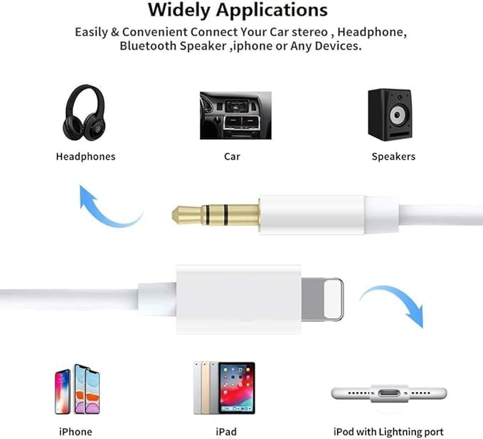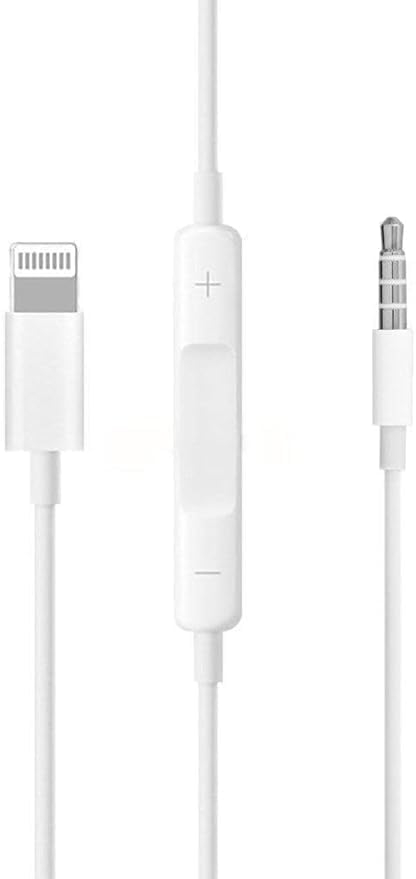 - كابل AUX للسيارة ومكبر الصوت وسماعات الراس مع موصل Lightn إلى AUX 3.5 ملم مع تحكم سلكي، متوافق مع 14/13/12/11/XR/XS/X/8/7/6 Plus، اي باد لأجهزة الصوت المنزلية، السماعات،