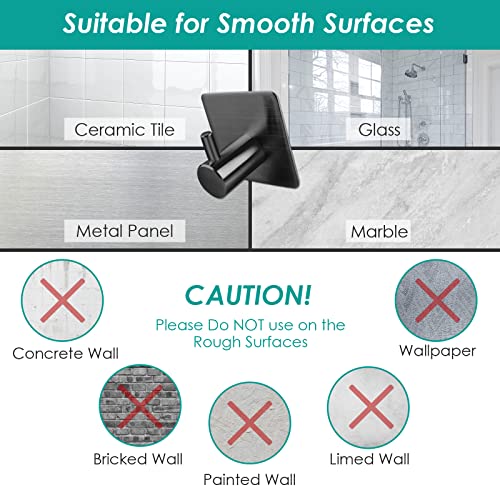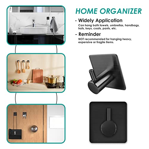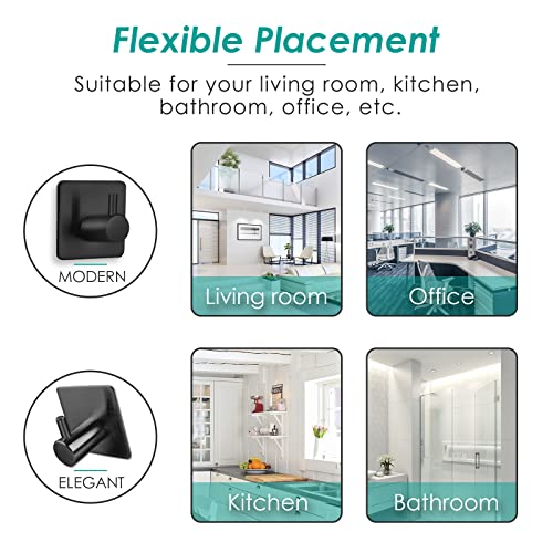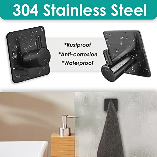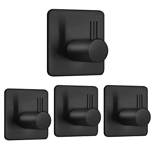 Auxmir - خطافات ذاتية اللصق من اوكسمير 4 قطع معطف الستانلس ستيل حائط شديدة التحمل للحمام والابواب برج مقاومة للماء لا حاجة الى صمغ مثقب اسود الحد الأقصى للوزن الموصى به: 10.0 كيلوجرام