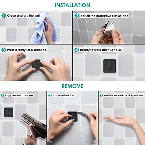 - 【سهل التركيب】بفضل الشريط اللاصق القوي، تحتاج فقط إلى إزالة الغطاء والضغط على الخطافات على السطح الأملس دون حفر أو إتلاف الحائط. كما أنها سهلة الإزالة دون أن تترك آثارًا خلفها.