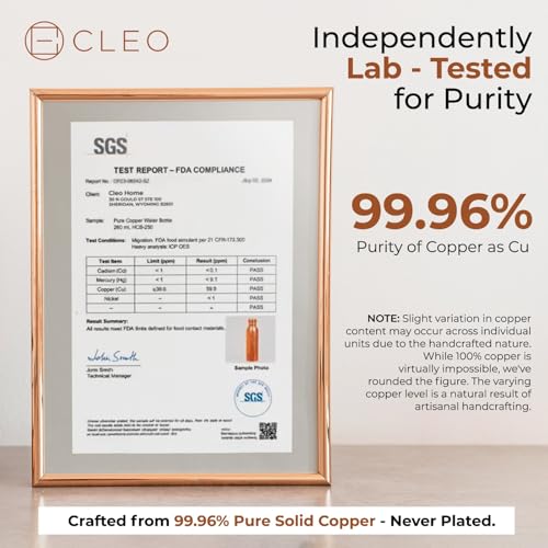 - زجاجات نحاسية مطروقة: اختبر نقاء النحاس الأيورفيدا مع زجاجة مياه الشرب المصنوعة يدويًا. تزن كل زجاجة مياه نحاسية حقيقية 250 جم ويبلغ ارتفاعها 25.4 سم وعرضها 7.62 سم، بسعة كبيرة تبلغ 950 مل.