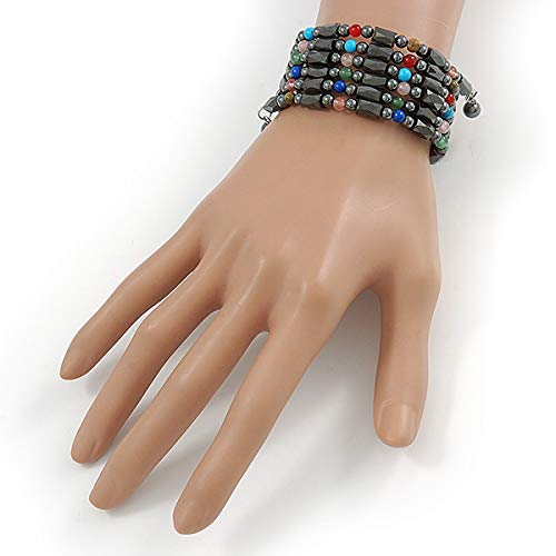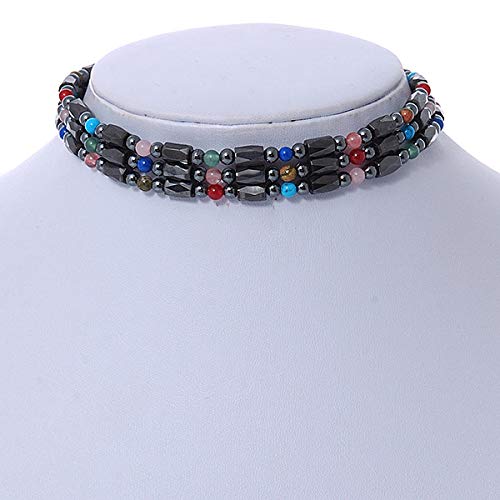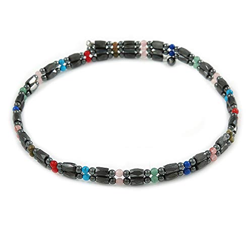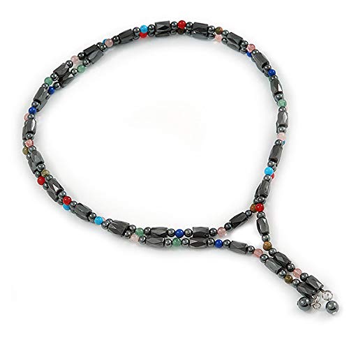 Avalaya - افاليا عقد / سوار مغناطيسي من خرز الهيماتايت مع احجار شبه كريمة متعددة الالوان - الطول الكلي 90 سم، للنساء