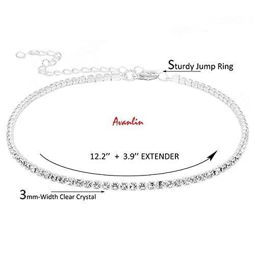 Avanlin - Avanlin Rhinestone Choker Necklaces Silver Plated 1 Layer Necklace Chain Jewelry for Women