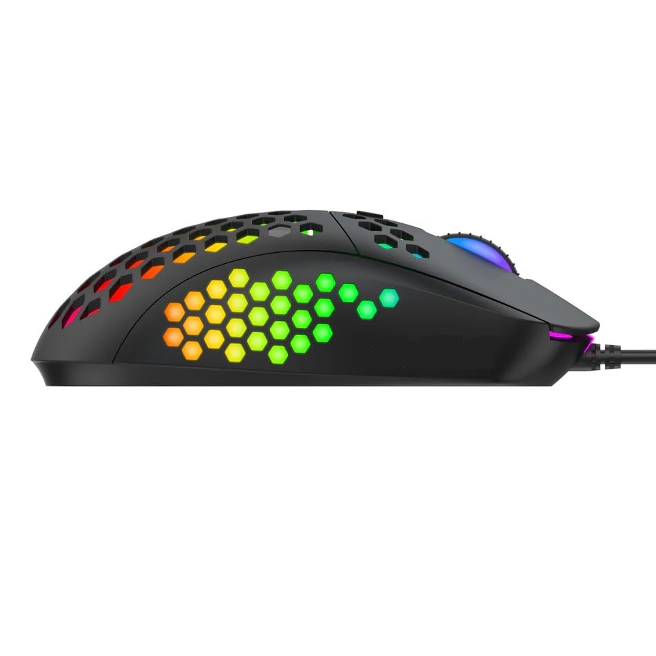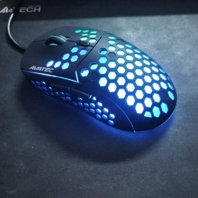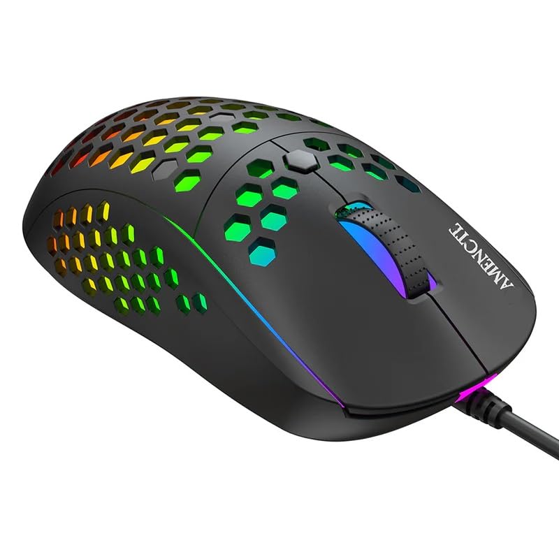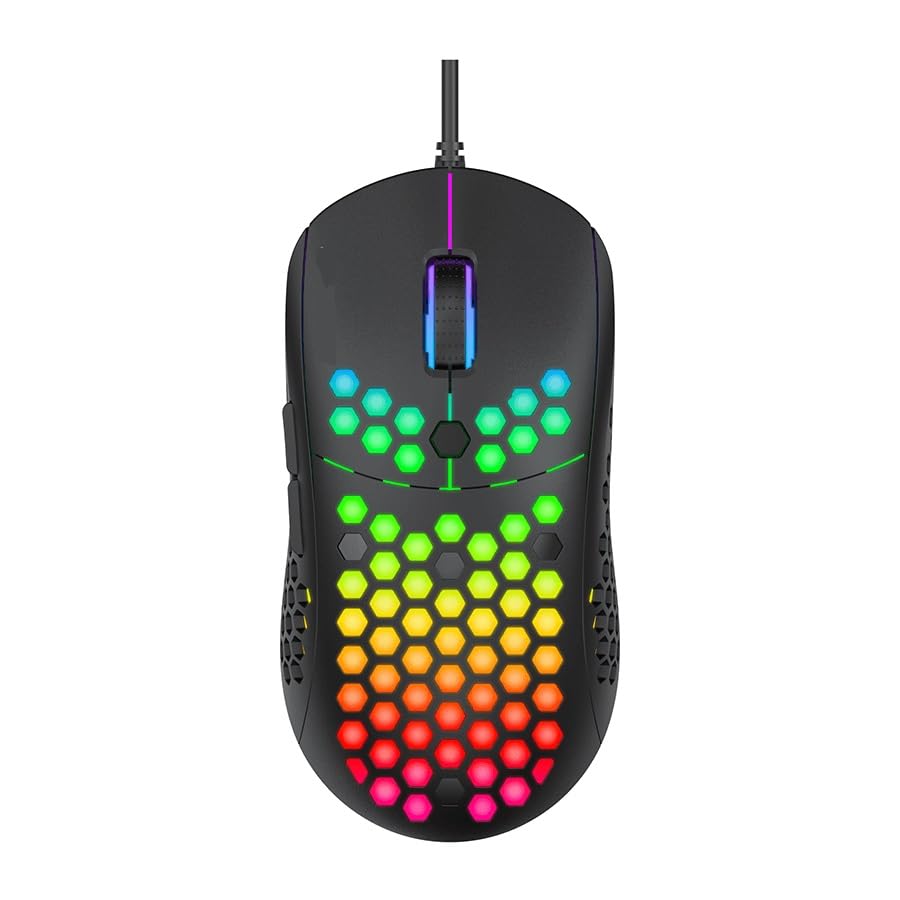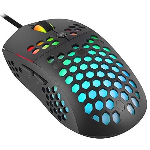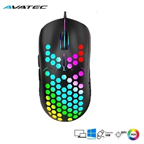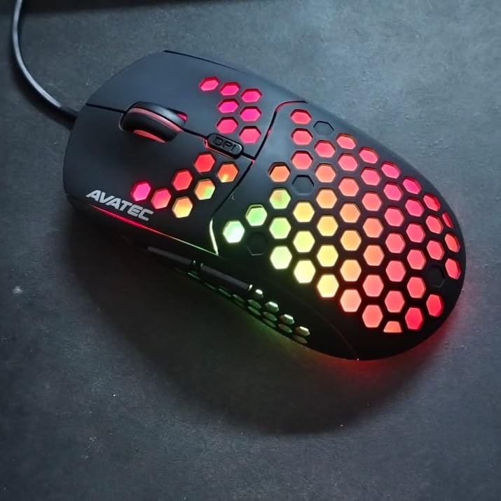 Generic - ماوس ألعاب بتصميم خلية النحل من افاتيك - قابل للتعديل 7200 نقطة لكل بوصة - ضوء متنفس ملون ار جي بي - هيكل خفيف الوزن - 6 أزرار - ماوس USB سلكي مجوف غير قابل للانزلاق | لون أسود (CMS8410B)