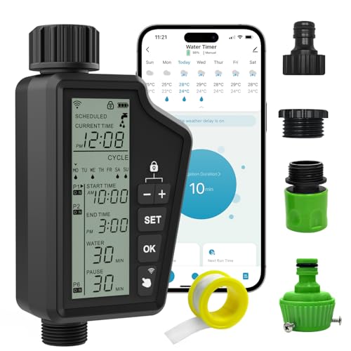 MIYOUKE - مؤقت ري تلقائي واي فاي مقاوم للماء بتصنيف IP65 من افاتو، 3 اوضاع لامداد المياه، يمكن ان يخلق 6 خطط مياه كل يوم، يدعم تطبيق سمارت لايف للتحكم عن بعد والتحكم الصوتي لاليكسا ومساعد جوجل