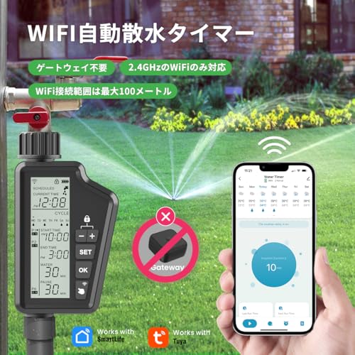 - مؤقت الري التلقائي واي فاي: يعتمد الجهاز على بروتوكول واي فاي، لذلك لا حاجة إلى بوابة. قم بتوصيله بالإنترنت عن طريق الاتصال بشبكة واي فاي 2.4 جيجاهرتز، تضمن شريحة واي فاي مدمجة عالية الأداء اتصالاً مستقرًا في نطاق 100 متر