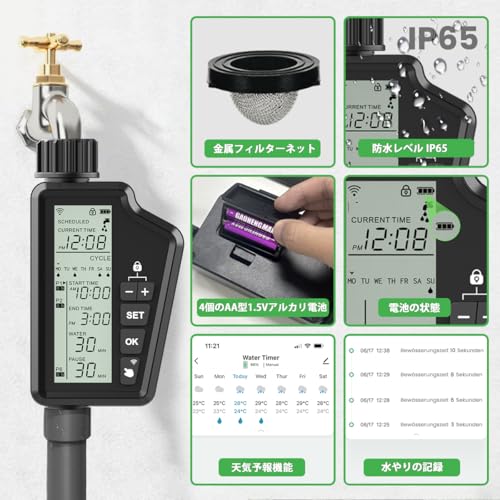 - يتضمن مؤقت ري تلقائي ومحولات 3/4 انش و1/2 انش ودليل تشغيل ياباني وشريط إغلاق و4 بطاريات قلوية 1.5 فولت. يقدم هذا المنتج خدمة ضمان لمدة عامين. إذا كان لديك أي أسئلة أو متطلبات، يرجى الاتصال بنا من خلال أمازون