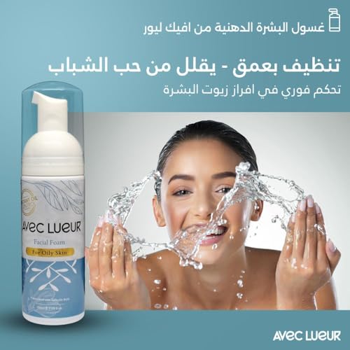 avec lueur - غسول فوم للبشرة الدهنية بخلاصة إكليل الجبل والصبار لتنظيف عميق والتحكم في اللمعان من افيك ليور، 150 مل