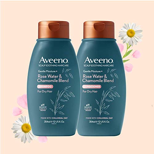 Aveeno - بلسم للعناية المهدئة بفروة الرأس بتركيبة ترطيب خفيفة بماء الورد والبابونج للشعر الجاف من افينو، سعة 354 مل