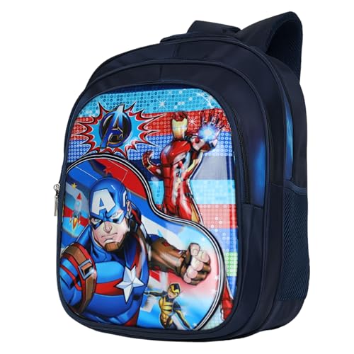 SOMUCH - شنطة ظهر مدرسية للاولاد من افينجرز - طباعة كابتن امريكا وايرون مان - شنطة اطفال خفيفة الوزن مع احزمة مبطنة، قسمين وجيبين جانبيين شبكيين - ازرق - مثالية للمدرسة والسفر