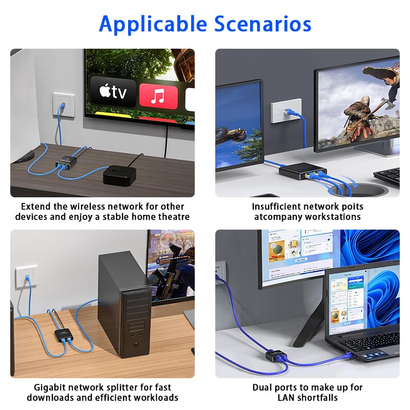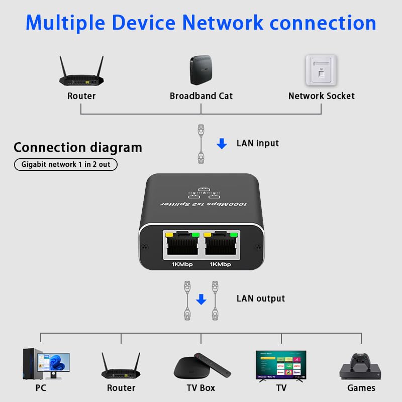 - 【موزع ايثرنت 1 إلى 2】يمكن لموزع ار جيه 45 هذا تقسيم إشارة شبكة 1 جيجابت إلى إشارتين جيجابت، مما يسمح لجهازين بالاتصال بالإنترنت في وقت واحد، ويمكن أن يصل معدل نقل الجهازين إلى 1000 ميجابت في الثانية، وهو الحل الأمثل لمشكلة عدم كفاية كابلات الشبكة ونقل الإشارة غير المستقر.