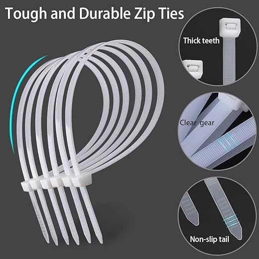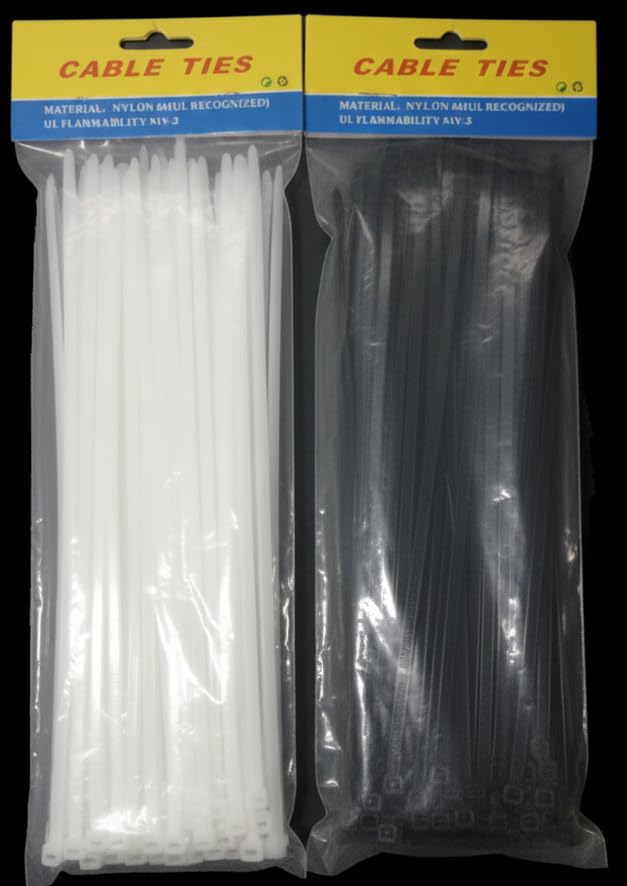 - المحتويات: عبوتان تحتويان على 200 قطعة من روابط الكابلات (100 أبيض + 100 أسود) للاستخدامات المتنوعة