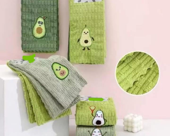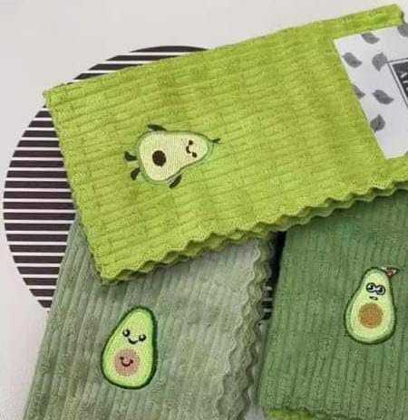 - مجموعة مناشف: تتكون من 4 قطع من مناشف المطبخ المزينة بنقشة الأفوكادو الجذابة