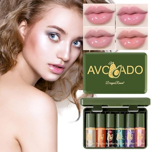 Generic - ملمع شفاه بنكهة الفواكه للبنات من افوكادو، زيت مرطب الفاكهة، أحمر سائل شفاف عديم اللون، لترطيب يدوم طويلا للشفاه (6 قطع)