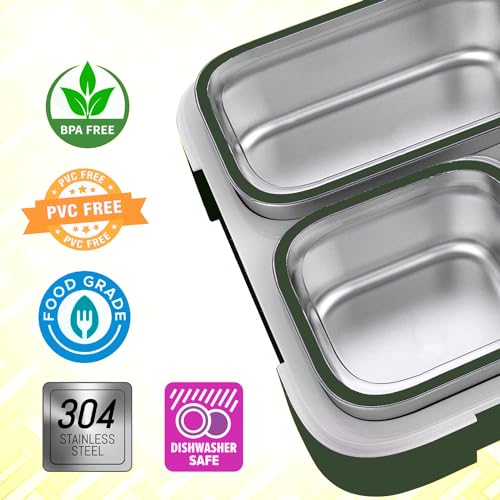 - هيكل من الفولاذ المقاوم للصدأ الفاخر: مصنوع من الفولاذ المقاوم للصدأ عالي الجودة الآمن غذائيًا، لانش بوكس متين ويدوم طويلاً وخالي من المواد الكيميائية الضارة الموجودة عادة في العلب البلاستيكية.