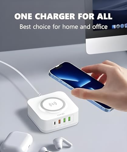 Generic - شاحن لاسلكي 32 وات سريع AW004 بالاضافة الي منافذ USB -PD وQC وUSB-A –كابل 1.5 متر - لون ابيض