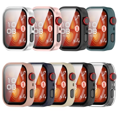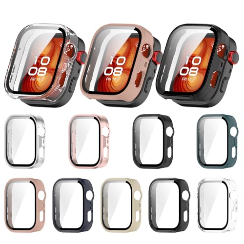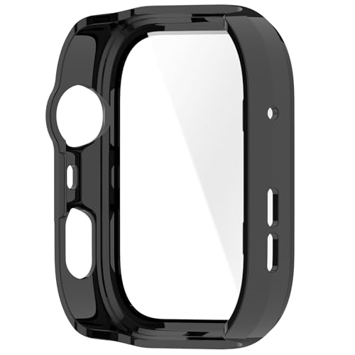 AWADUO - جراب حماية متوافق مع ساعة هواوي واتش فيت 4 برو الذكية بتغطية كاملة من البولي كربونات مع واقي شاشة لمس من الزجاج المقوى، ملحقات الساعة الذكية من اوادو (لون أسود)