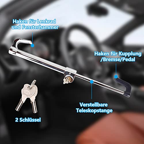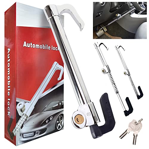 Generic - قفل لعجلة القيادة للسيارة، قفل امان عالمي لدواسة الفرامل والدبرياج مضاد للسرقة وقابل للسحب بخطافين لقفل دركسيون الفان والسيارة والاس يو في والشاحنة مع مفتاحين من اواجاس