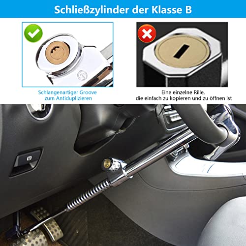 - مادة عالية الجودة: قفل الفرامل لمقابض عجلة قيادة السيارة مصنوع من الستانلس ستيل، وهو قوي ومتين. يمكنها منع الجروح والطرق والتآكل والتشققات ومقاومة الحفر والنشر والنشر. هجمات المطرقة والفريون يمكن أن يمنع القفل التلسكوبي الهيدروليكي القوة المفرطة عند قفل السيارة، ولا يتلف السيارة، وبالتالي فإن القفل أكثر استقرارًا