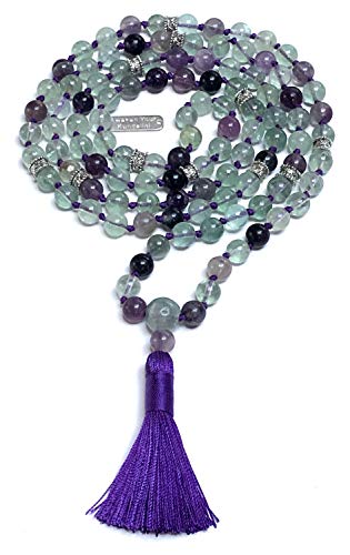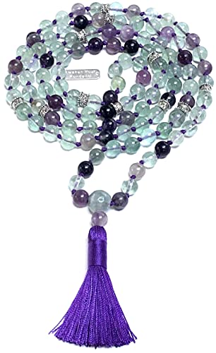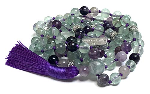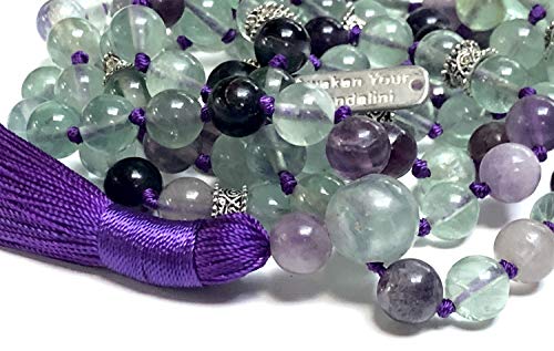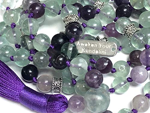 AWAKEN YOUR KUNDALINI - سلسلة خرز شاكرا جابا مالا اصلية 8 ملم 108 خرزة بشرابة مصنوعة يدويًا مناسبة لجلسات اليوجا والاسترخاء والاستشفاء mm احجار كريمة