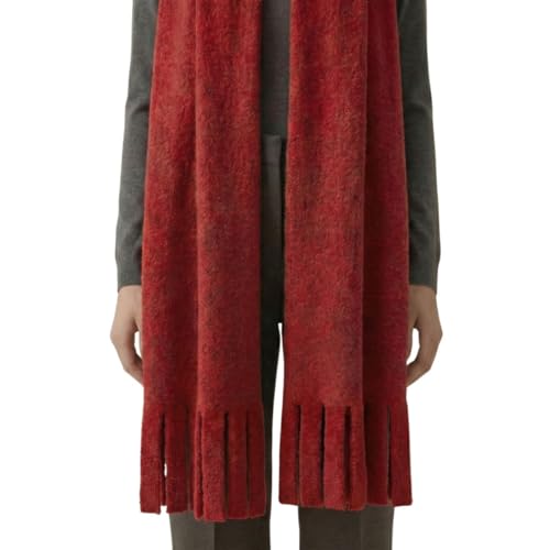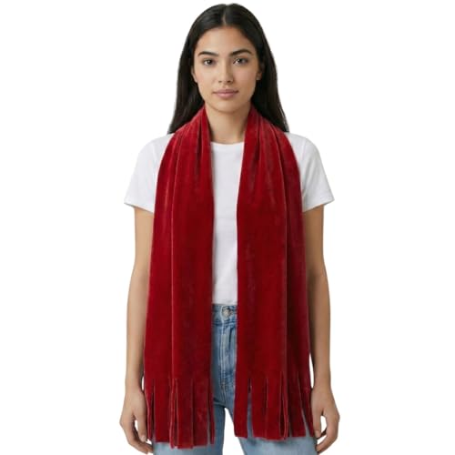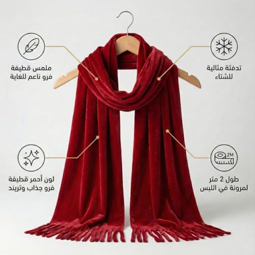 Awaan - شال حريمي شتوي باللون الاحمر من القطيفه والفرو الناعم ، سكارف تريند من اوان بملمس فائق النعومة، تصميم بناتي طويل بمقاس طويل 2 متر يوفر دفئًا عاليًا وإطلالة عصريه ومريحة.