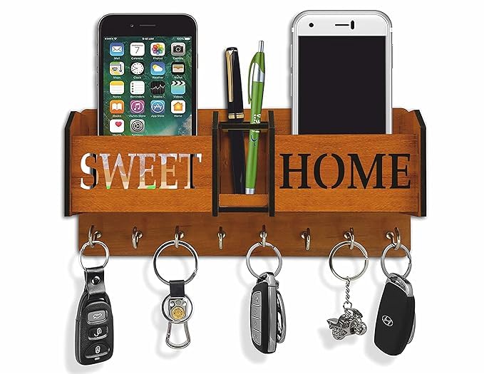 AWARANSIA - حامل مفاتيح خشبي بتصميم سويت هوم للموبايل من اوارانسيا، حامل أقلام وصندوقين تخزين، حامل مفاتيح لديكور غرفة المعيشة