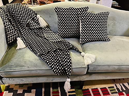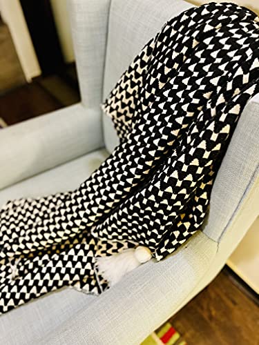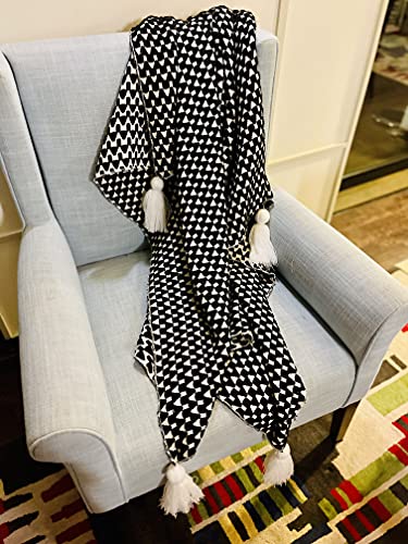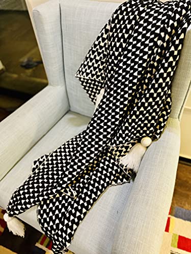 AWARD VELVETS - غطاء من القطن والاكريليك بتصميم هندسي باللونين الاسود والابيض من اوارد فيلفيتس، مقاس ميديوم (M)(50 × 60 بوصة)